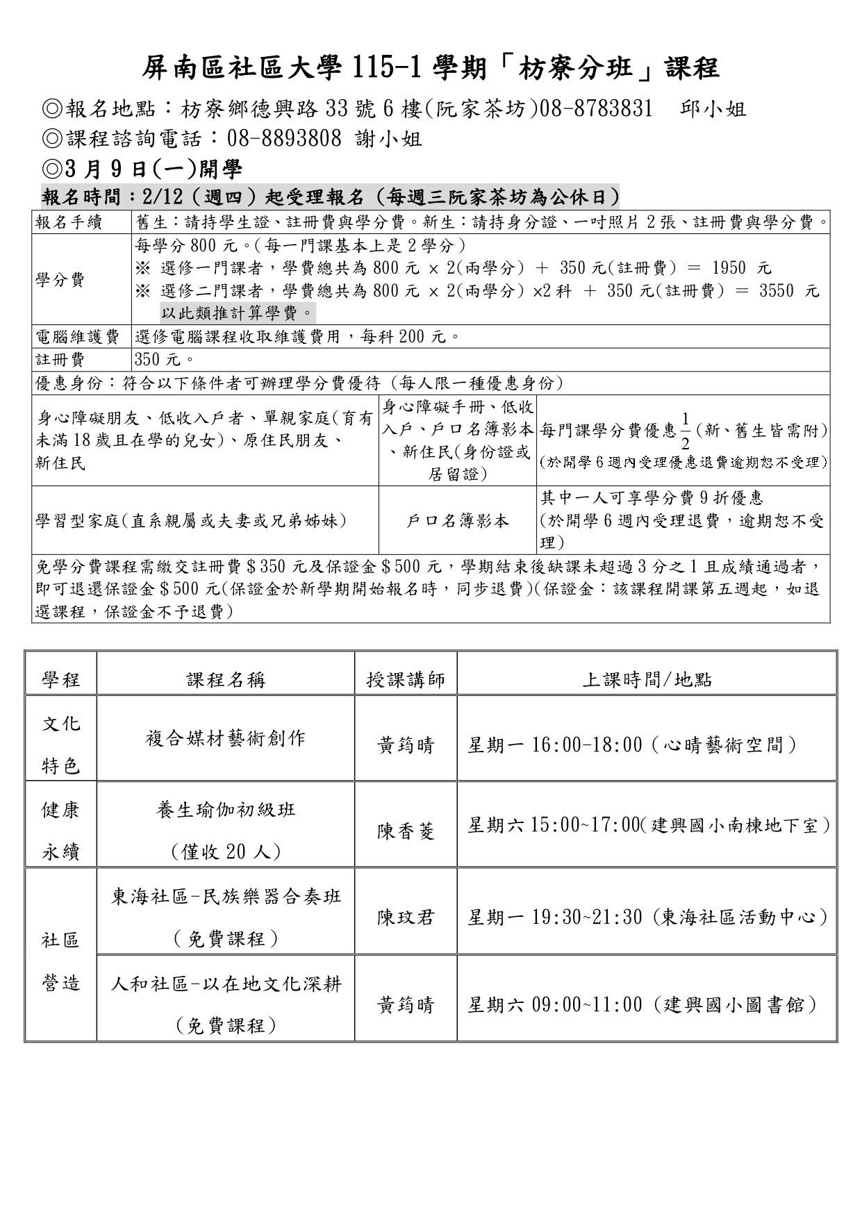 🌟 115-1枋寮分班 招生宣傳單檔案下載連結